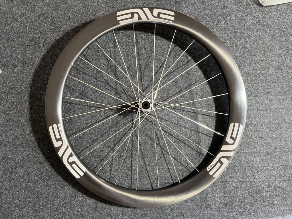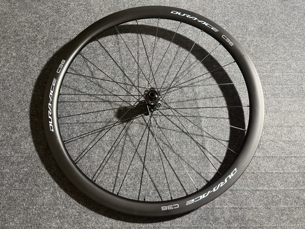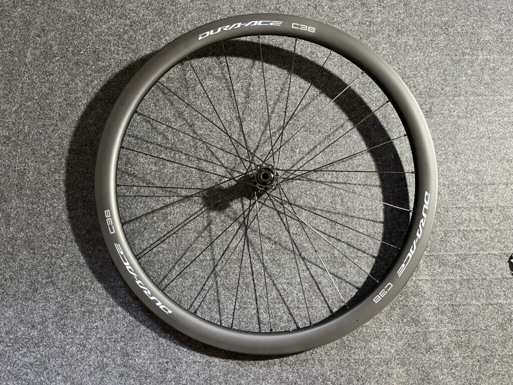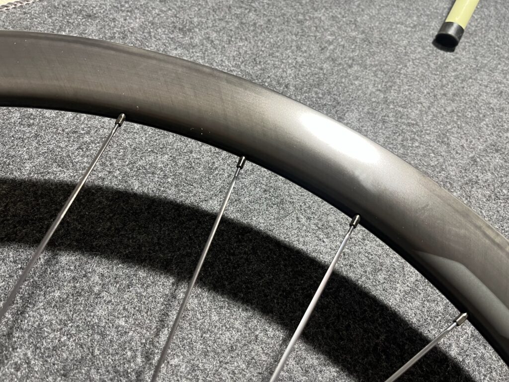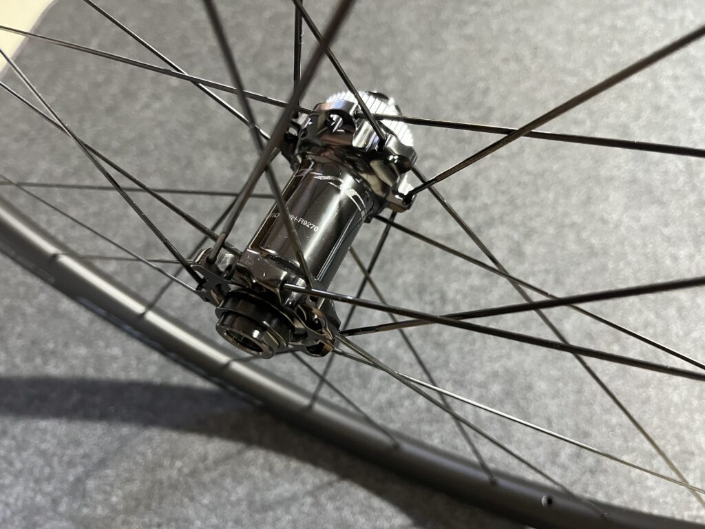デュラエースと同じマット仕上げのホイールですが、こちらはカーボン目を生かした仕上げです。